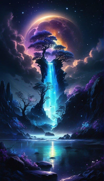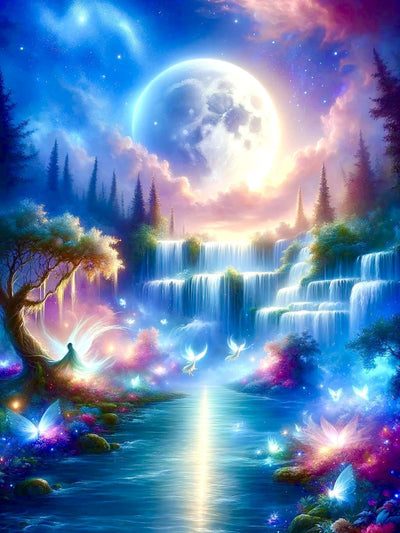 Diamond Painting-Traumhafter Wasserfall im Mondlicht Diamond Painting-Traumhafter Wasserfall im Mondlicht
