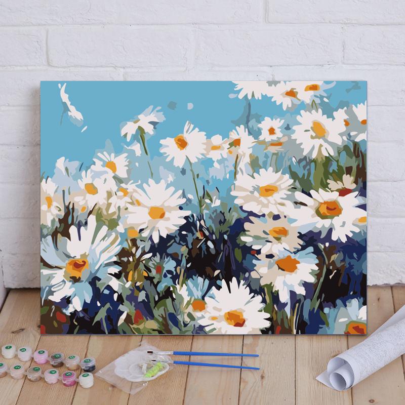 Malen nach Zahlen -Weiße Margeriten im Sonnenlicht