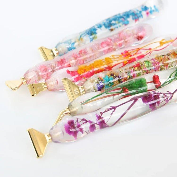 Stift mit Blumen + 6 Metall Aufsätzen - Diamond Painting