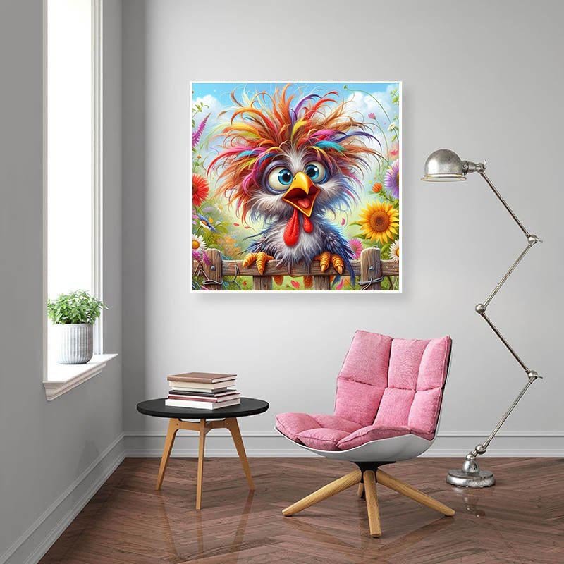 Diamond Painting-Bunter Spaßvogel im Blumenfeld