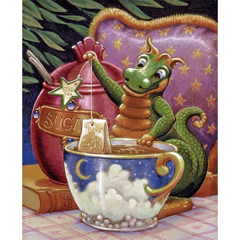 Diamond Painting-Drache macht Tee