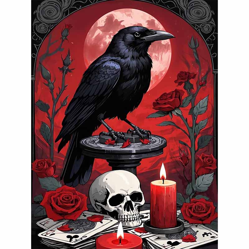 Diamond Painting-Dunkler Rabe und Rosen