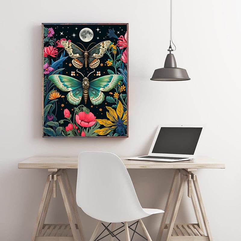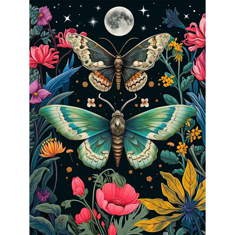 Diamond Painting-Mondschein-Schmetterlinge im Blumenfeld