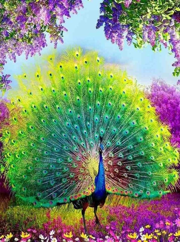 Diamond Painting-Prächtiger Pfau im Blütenmeer